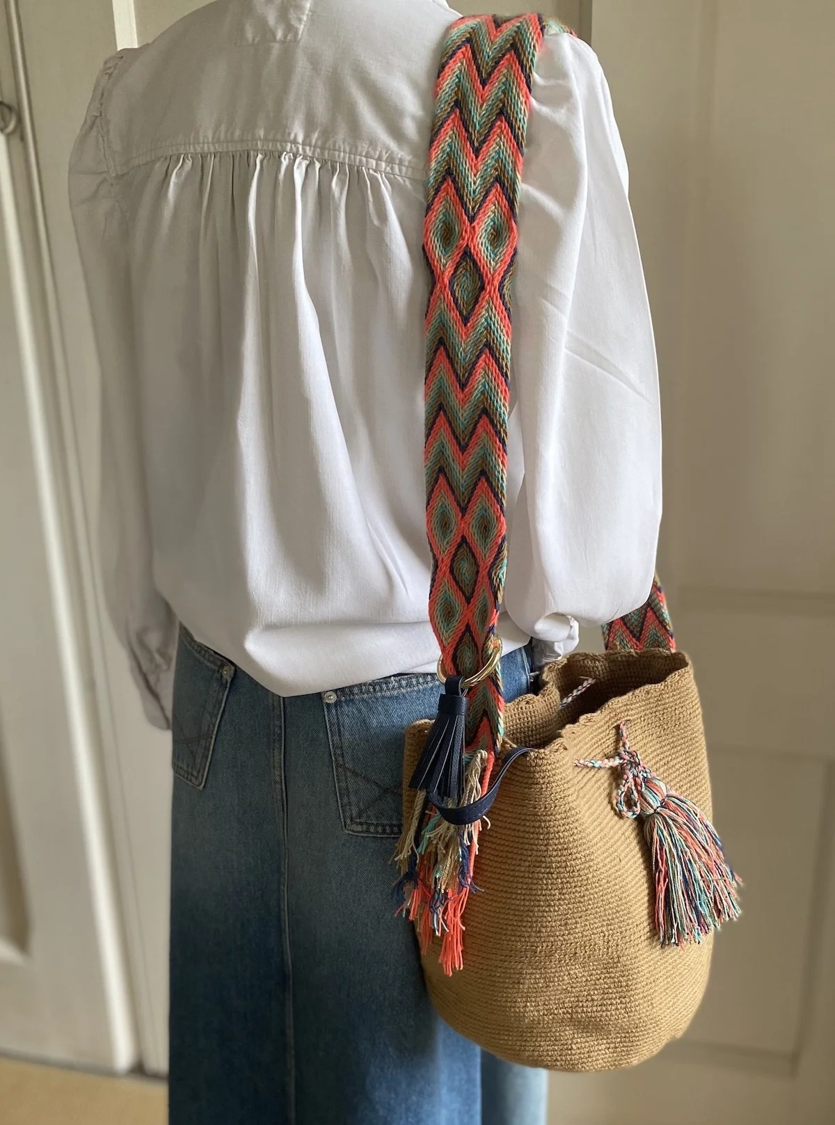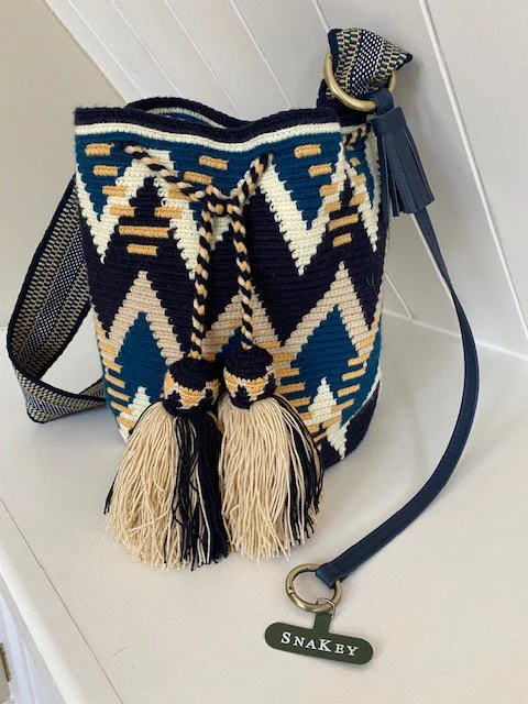 Limited Summer Collection: an exquisite Wayuu bag, hand-woven in Columbia, elegantly paired with a SnaKey to complement its vibrant colours.