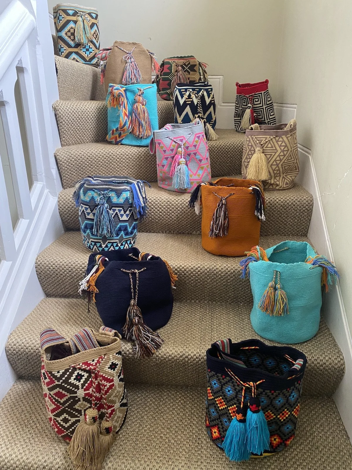 Hand-woven by Wayuu artisans of Columbia, each bag is a striking celebration of colour, tradition and meticulous craftsmanship. No two bags are identical. Whether you choose a simpler or more intricate design, every bag is a distinctive statement piece, perfect for summer days, travel, festivals and adding character to everyday style.